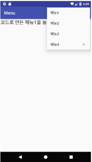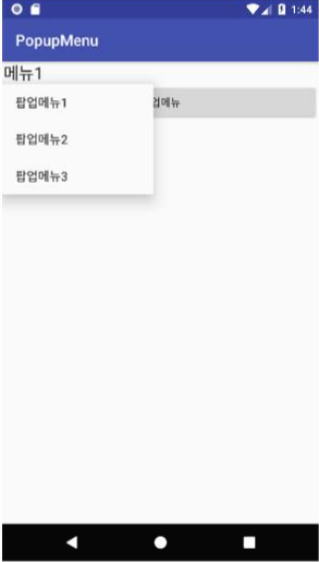 - OnMenuItemClickListener: 메뉴의 항목을 눌렀을 때 반응하는 리스너입니다.