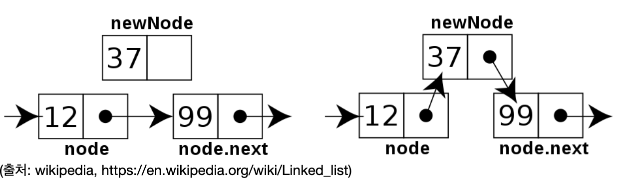 1. 링크드 리스트 데이터 사이에 데이터를 추가