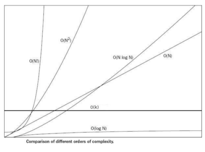 - O(1) < O(logn) < O(n) < O(nlogn) < O(n^2) < O(2^n) < O(n!)