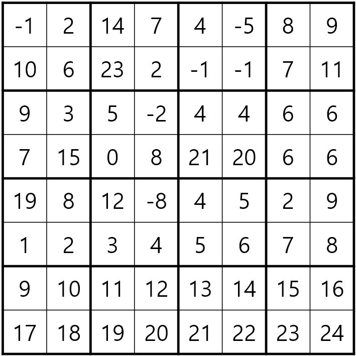 - 행렬을 2×2 정사각형으로 나눈다.