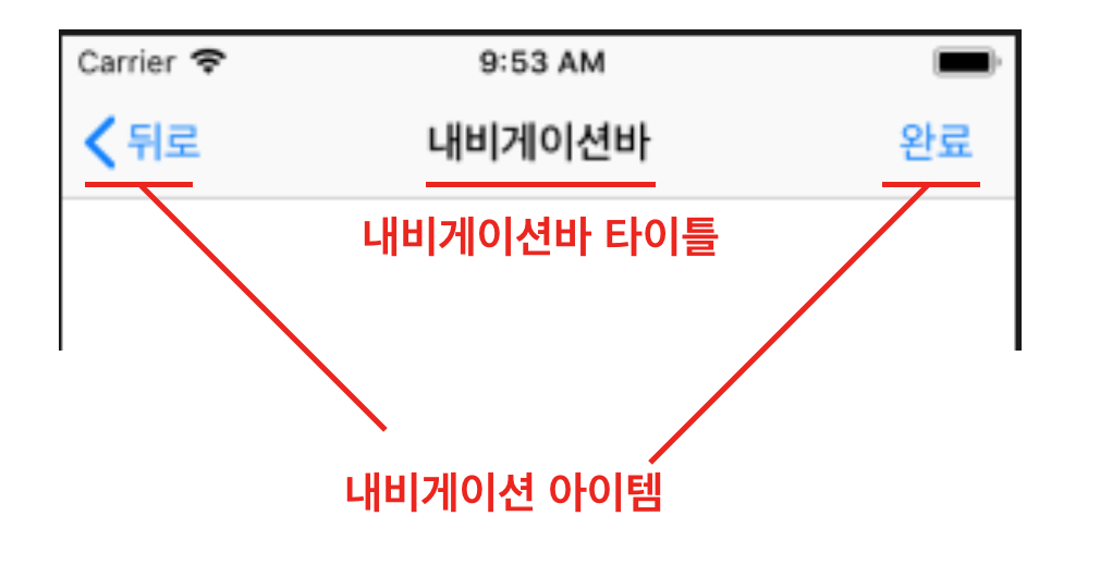 - 내비게이션 컨트롤러가 직접 관리하는 뷰(내비게이션바 또는 툴바)