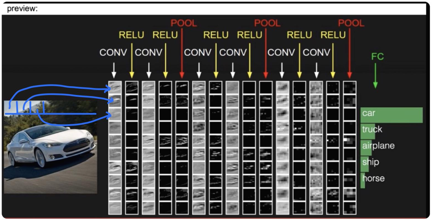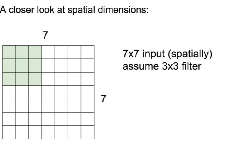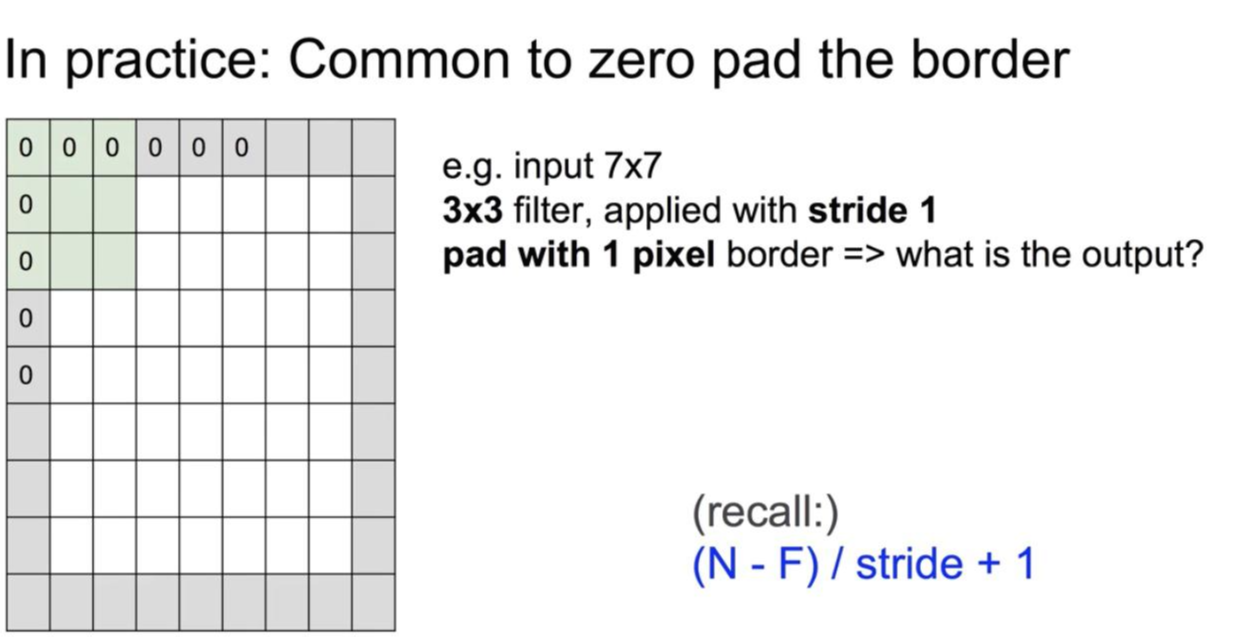 -in general, common to see CONV layers with stride 1, filers of size FxF, and zero padding with (F-1)/2/(will preserve size spatially)