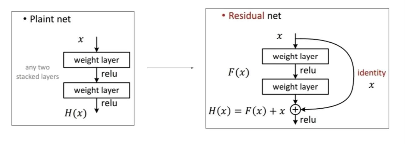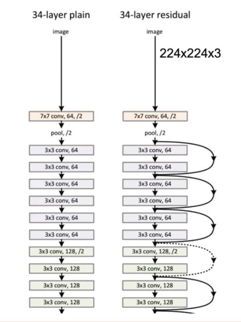 일반적인 경우에는 layer가 쭉 연결되어 있습니다. 그런데 ResNet의 경우에는 중간에 layer를 건너뛰고 앞의 layer와 연결됩니다.