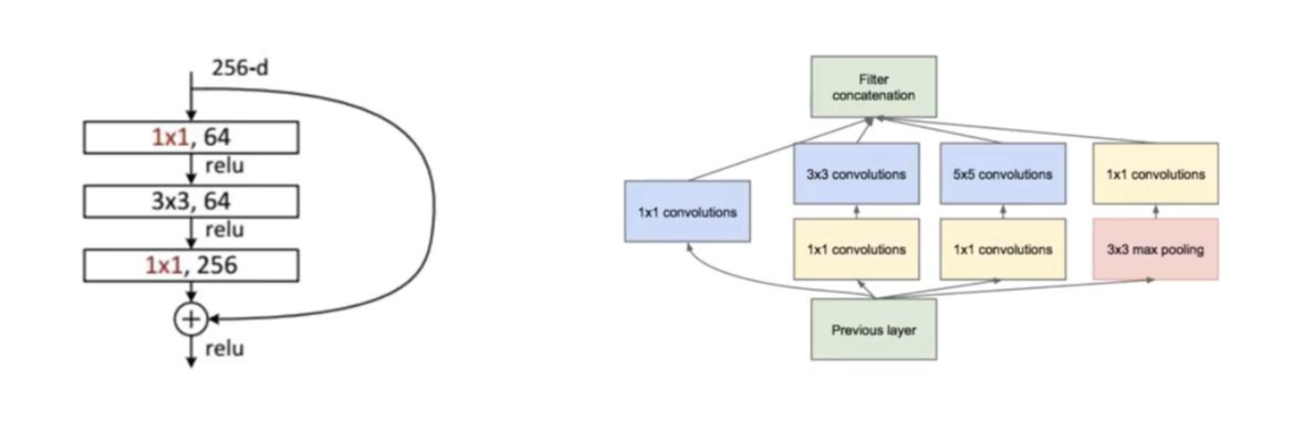 왼쪽의 ResNet과 오른쪽의 GoogLeNet Inception Module은 다른 형태이지만 상당히 비슷한 아이디어를 사용한 것이라고 볼 수 있습니다.
