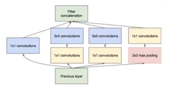 3. 1x1 convolution 위로 3x3 convolution과 5x5 convolution을 사용합니다.