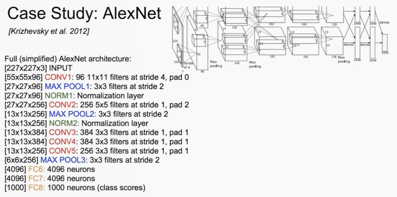 227x227x3 이라는 매우 큰 사이즈의 이미지를 사용합니다. 필터는 11x11x3 사이즈 96개를 사용하며, stride는 4로 합니다.