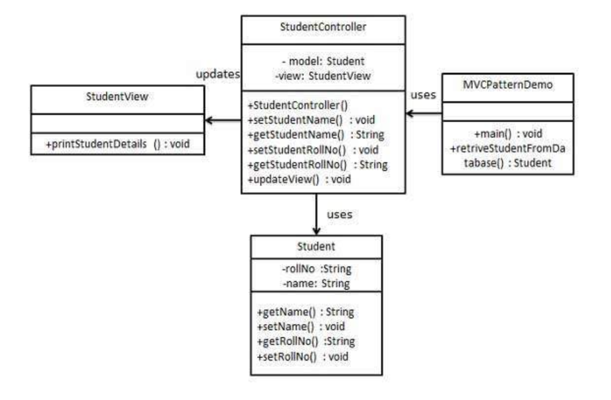StudentController 메소드를 사용하여 MVC 디자인 패턴의 사용을 보여줍니다.