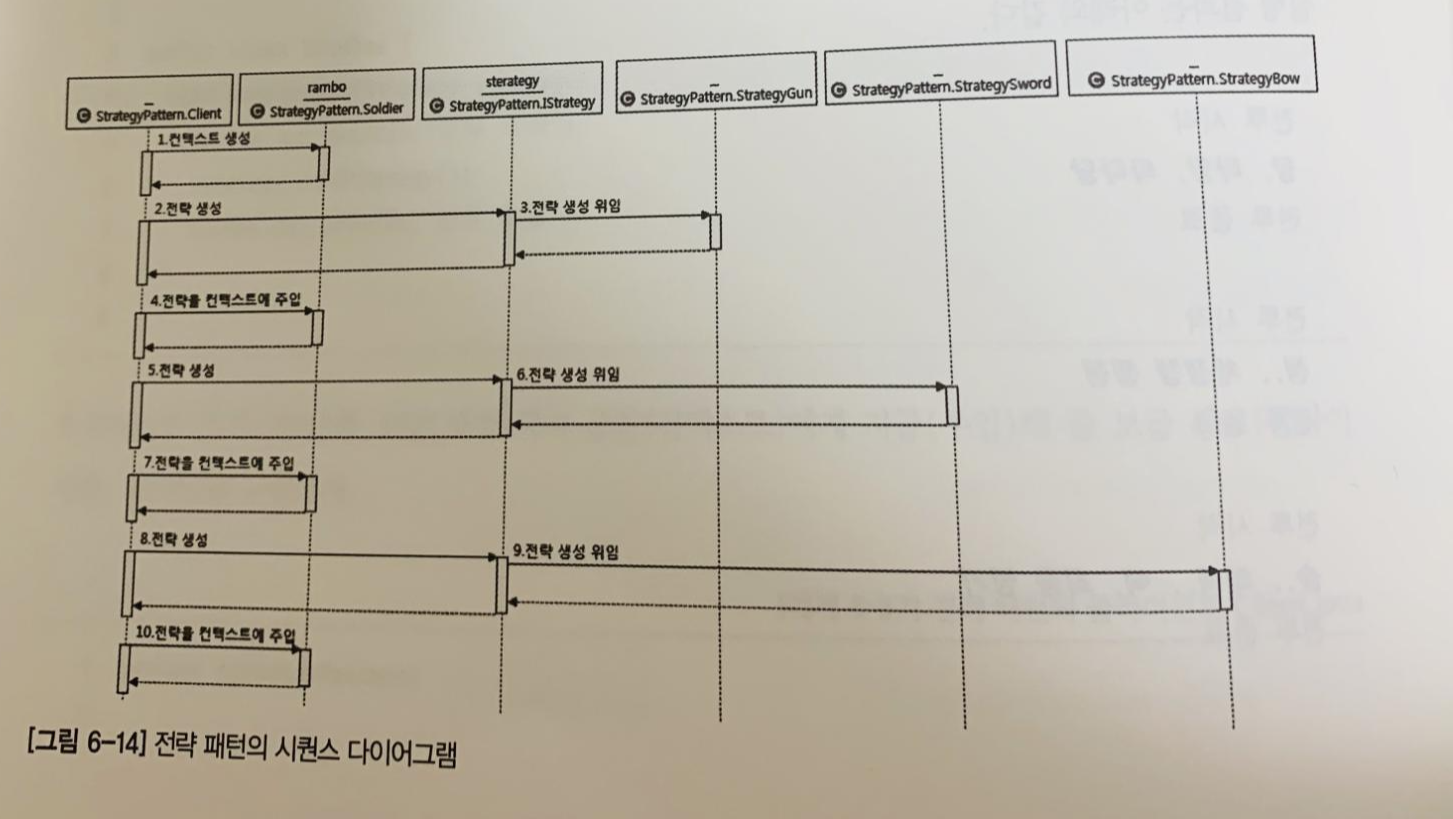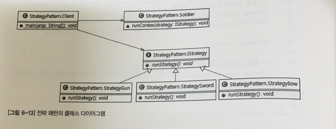 - 전략 객체를 생성해 컨텍스트에 주입하는 클라이언트(제 3자, 전략 객체의 공급자)